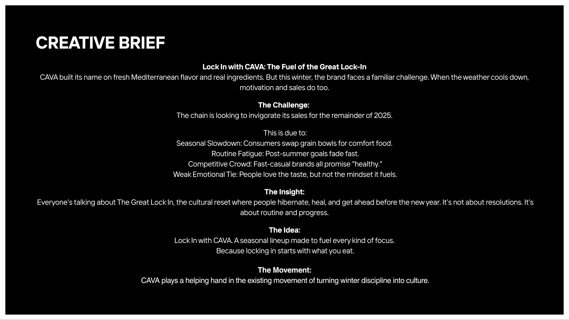 At CAVA, we believe food should match your ambition. That’s why we created the Lock In with CAVA lineup, a seasonal collection of bowls made to fuel the winter arc, the Great Lock-In. The era of hibernation, reflection, and leveling up.